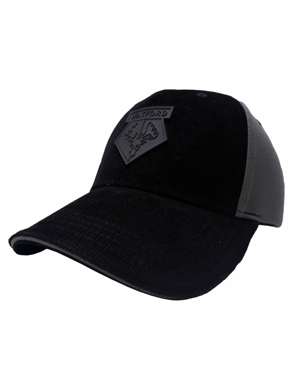 Classic style meets modern Hornets pride with the Watford Cord Cap. Featuring a black corduroy front panel and a contrasting grey back, this cap is finished with a sleek blackout rubber Watford FC crest for a subtle yet striking look. An adjustable strap with a clasp on the back ensures a comfortable fit, making it a perfect choice for matchdays and everyday wear.
