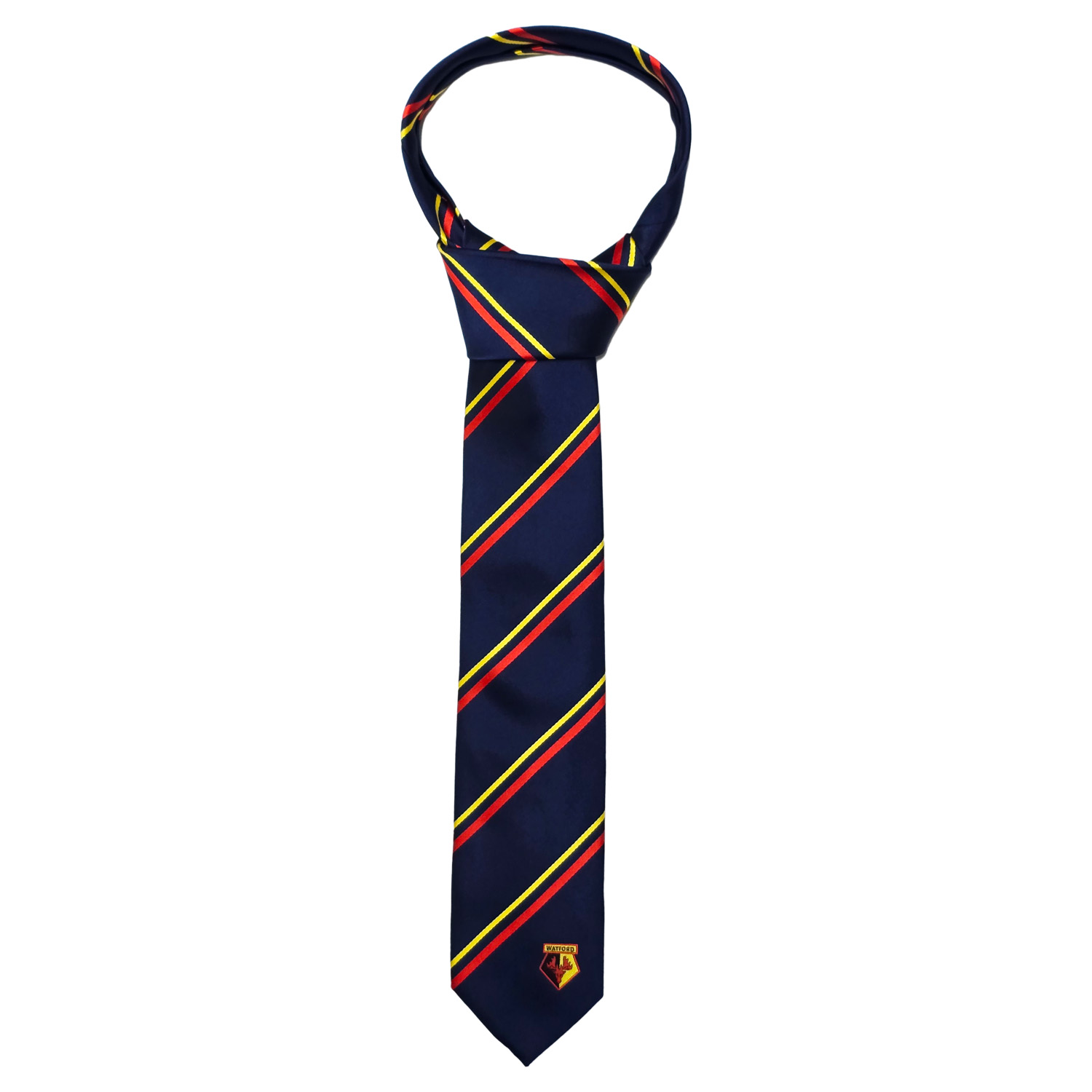 Show off your support for the Hornets at work, weddings or any special occasion with this polyester, navy tie with yellow and red pinstripes and embossed crest.