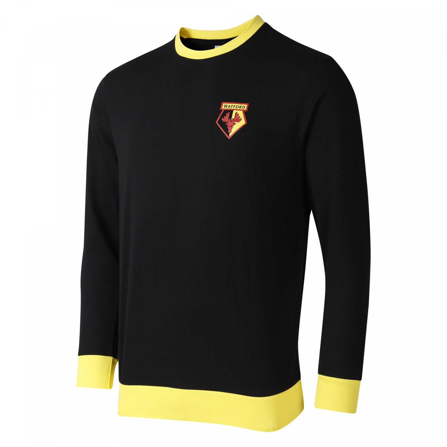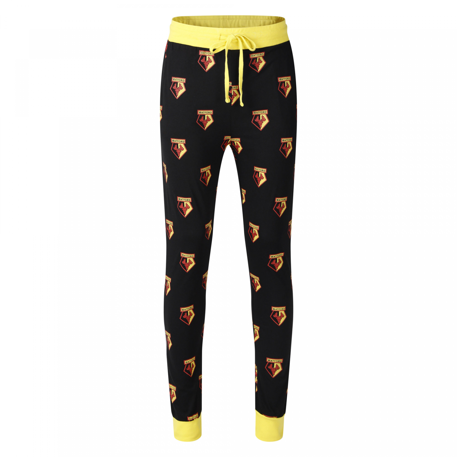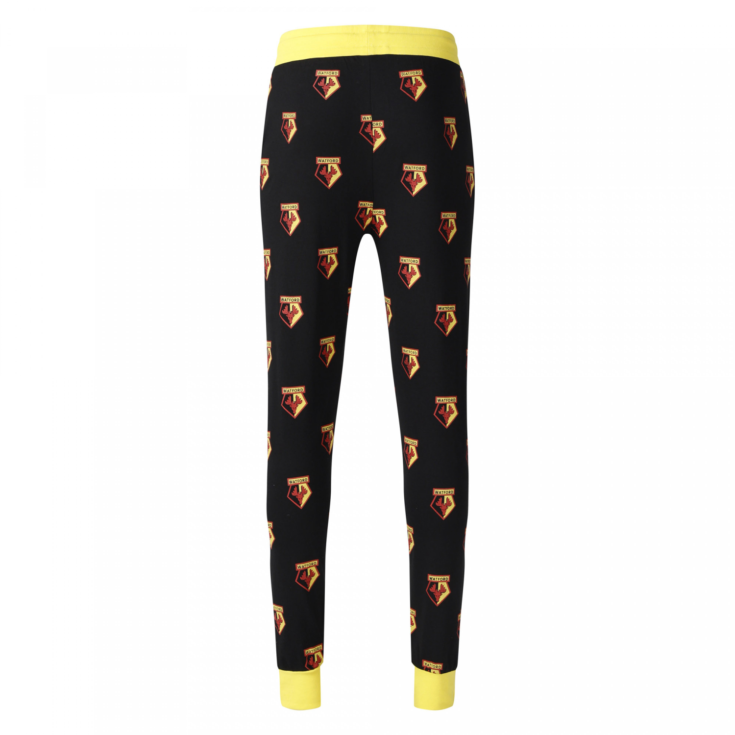 Snuggle up in style and show off your Hornets pride with the Watford FC Adult Unisex Long Sleeve Pyjama Set! This cozy set features a long-sleeved black T-shirt with yellow cuffs and a Watford FC crest, letting you rep your team even when you’re winding down. Paired with super-comfortable matching trousers, this set combines team spirit with all-night comfort. Whether you're cheering from the sofa or calling it a night, these PJs are perfect for every dedicated fan.