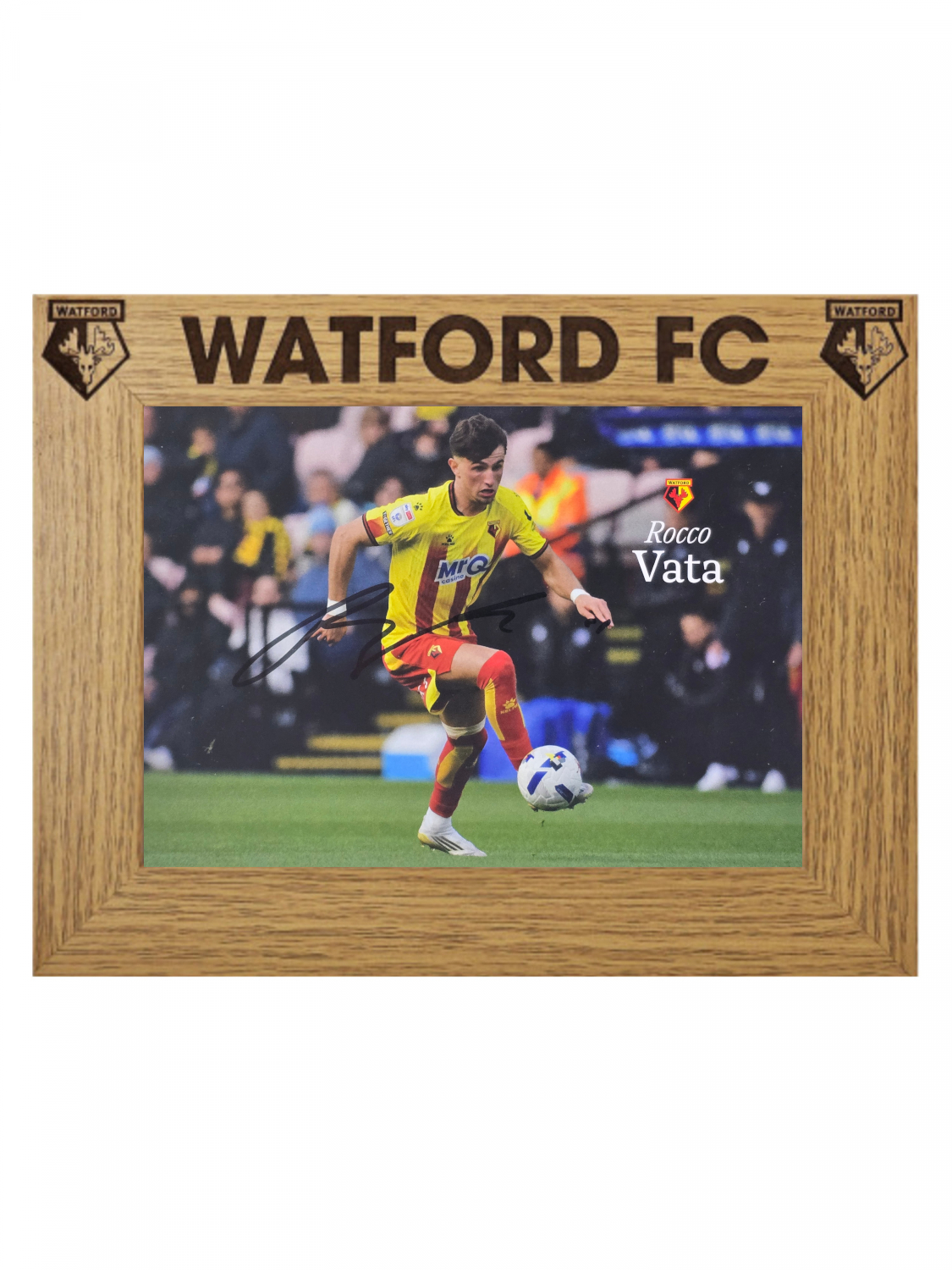 Watford FC Portrait Bamboo Frame, Match image of Rocco Vata signed inside the frame.
