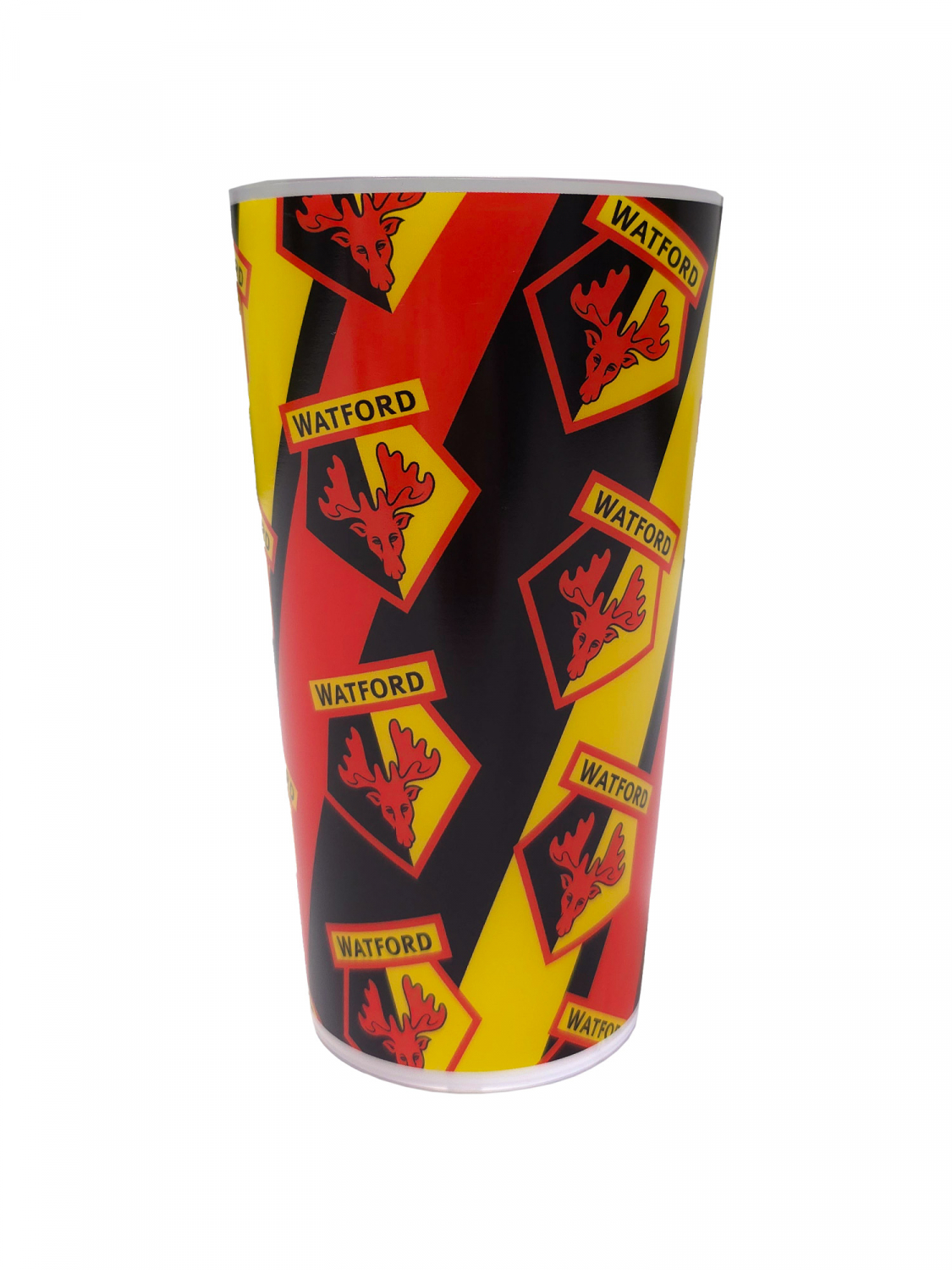 Celebrate with the Hornets with this re-usable plastic cup. The yellow, red and black cup features the Watford crest all over and a handy pint measurement.