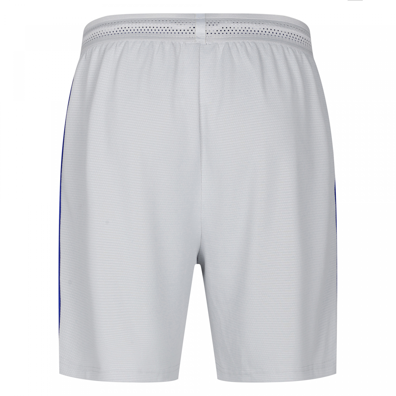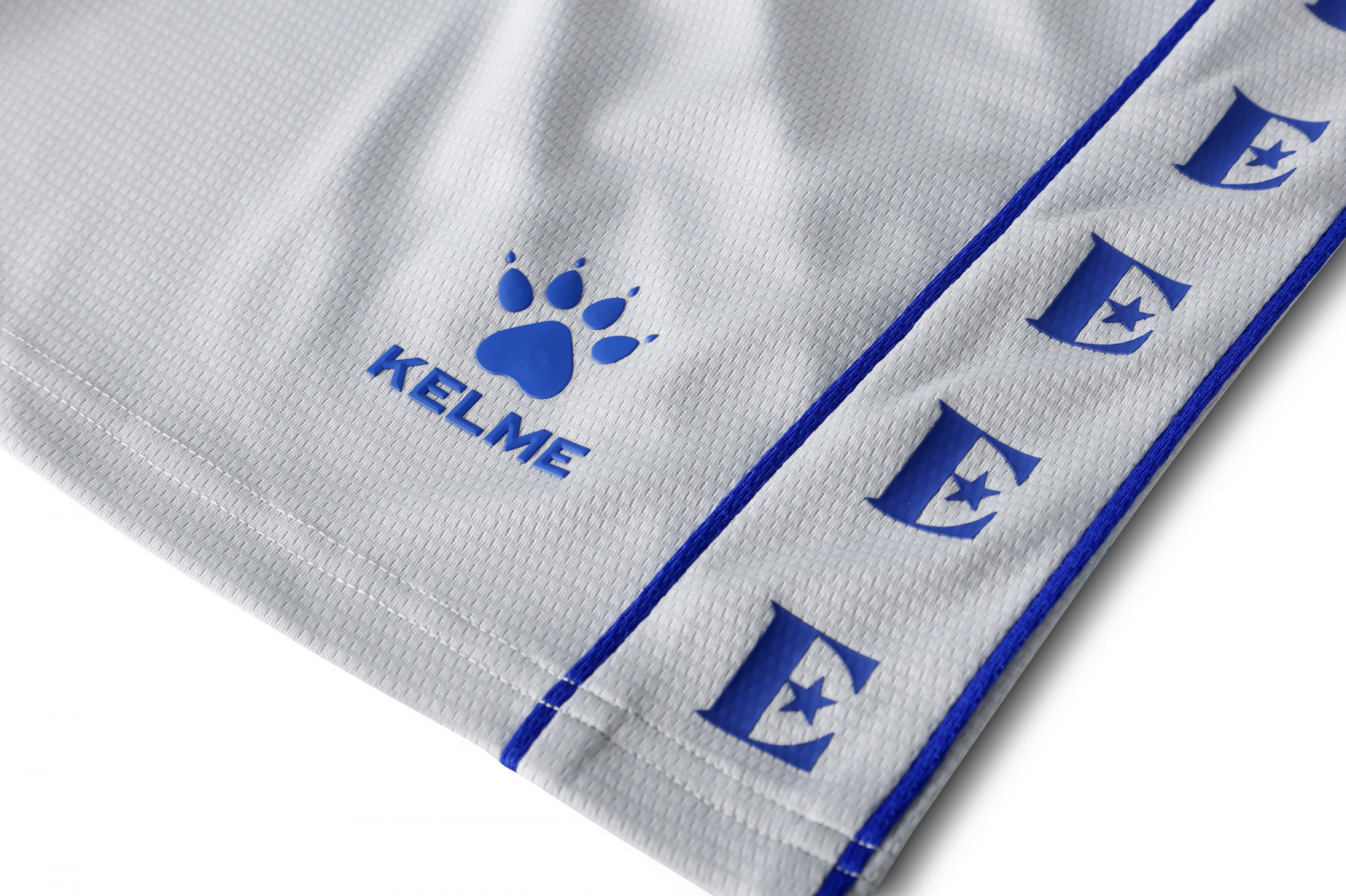 Complementing the shirt are silver shorts, again made from bespoke polyester, with E* taping running down both sides.